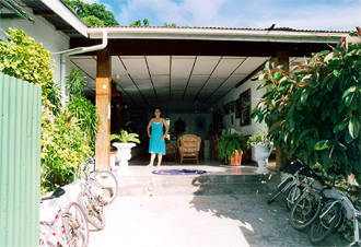 När vi kommit i land och fått våra väskor tog vi en taxi över till andra sidan av ön och Hotell La Cuvette utmed Praslins Grand Anse. Vi ställde in våra väskor på vårt rum och gav oss ut på promenad längs vägen utmed Grand Anse.