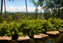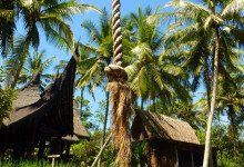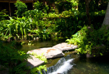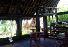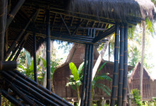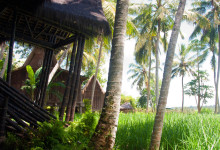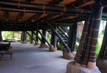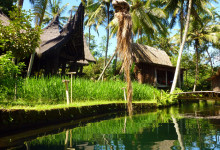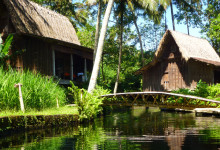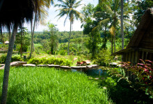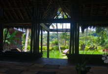 Bambu Indah, is a unique accommodation in rustic 100 year old house from Java, nicely decorated and with all the necessary mod cons, amidst lush paddy fields in Ubud, Bali. All buildings are slightly different from each other. This a hotel for those who want to experience something totally different than traditional hotel rooms. There’s a pool running between the houses and it is kept clean and hygienic in a completely natural way without any chemicals at all.