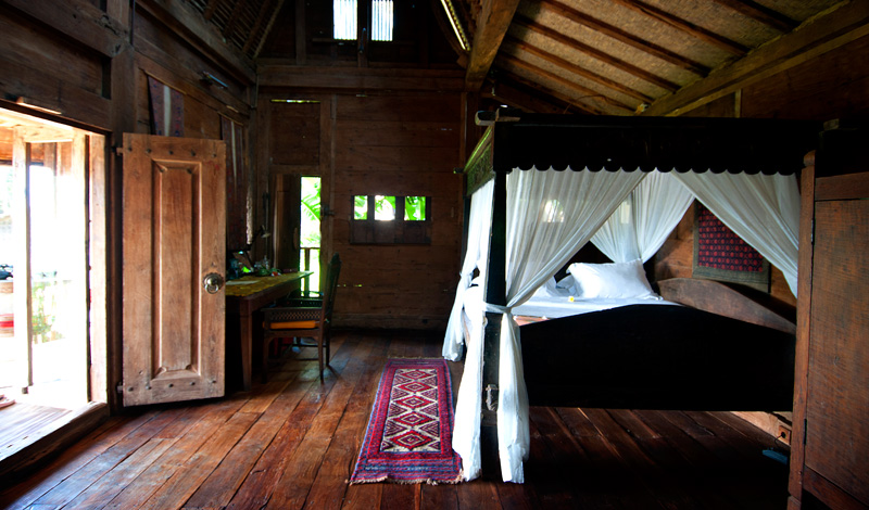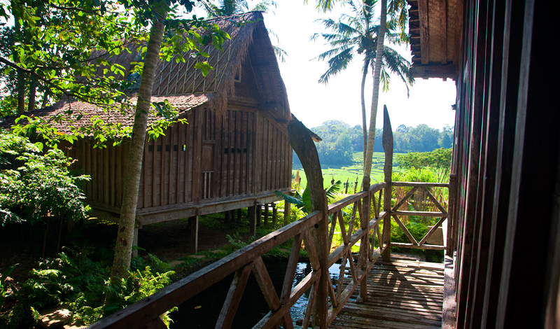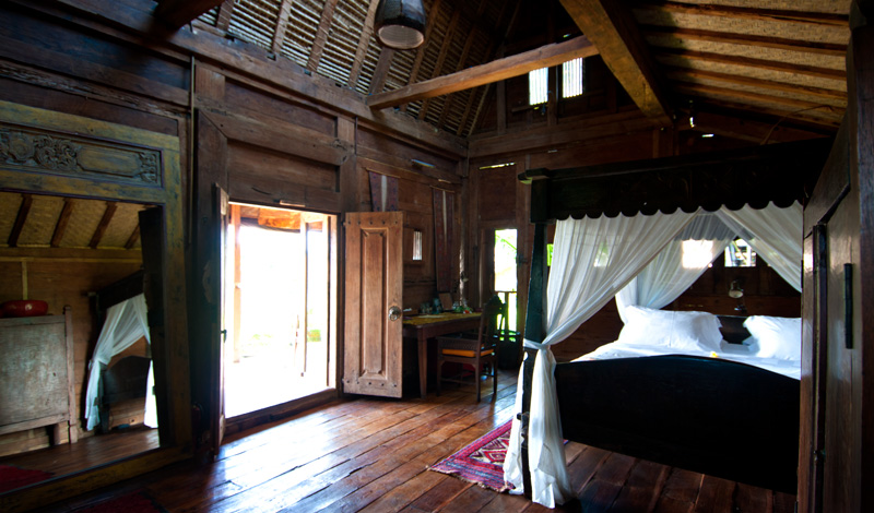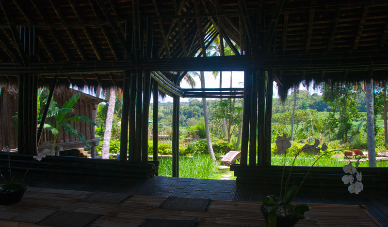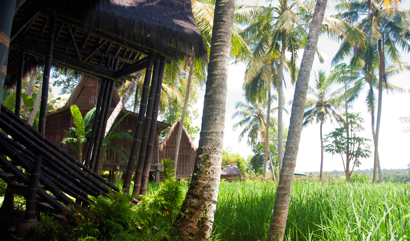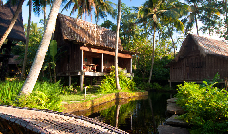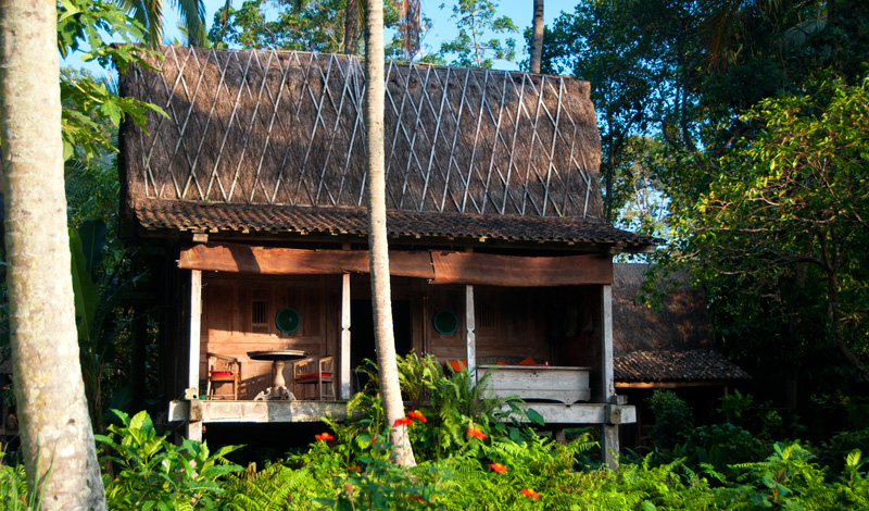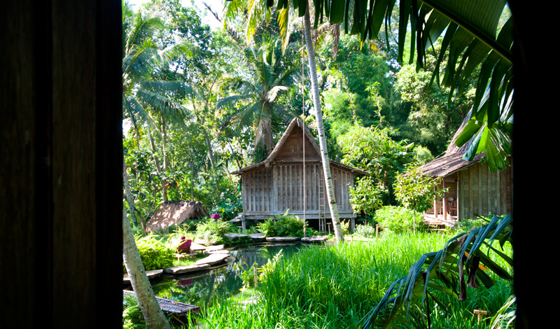 Bambu Indah, is a unique accommodation in rustic 100 year old house from Java, nicely decorated and with all the necessary mod cons, amidst lush paddy fields in Ubud, Bali. All buildings are slightly different from each other. This a hotel for those who want to experience something totally different than traditional hotel rooms. There’s a pool running between the houses and it is kept clean and hygienic in a completely natural way without any chemicals at all.