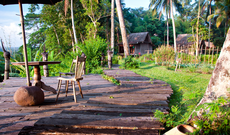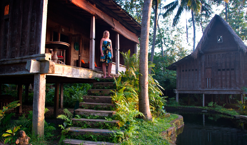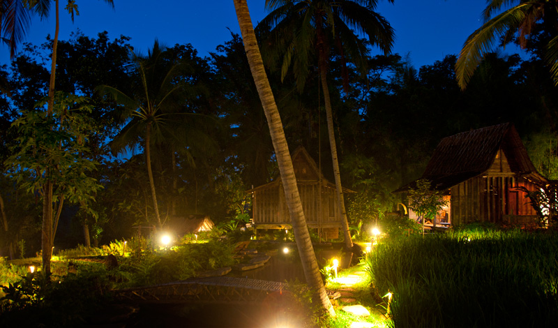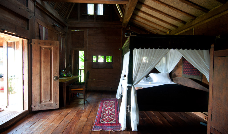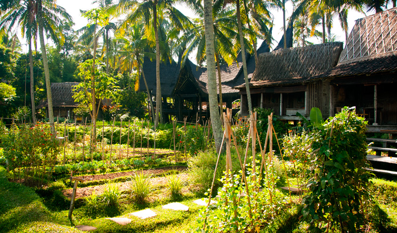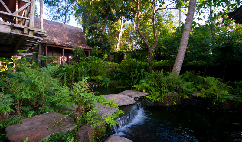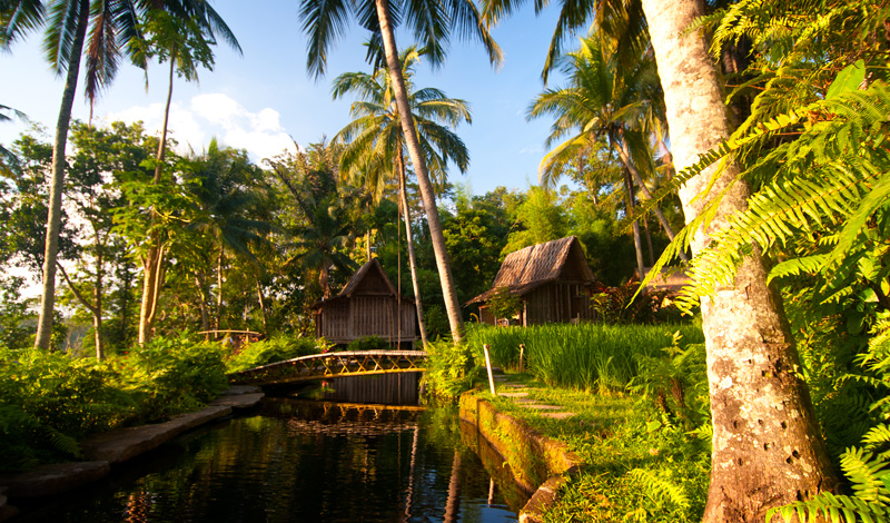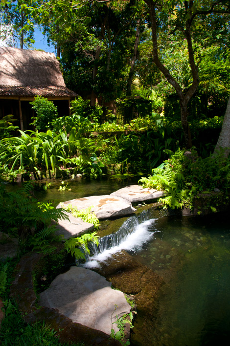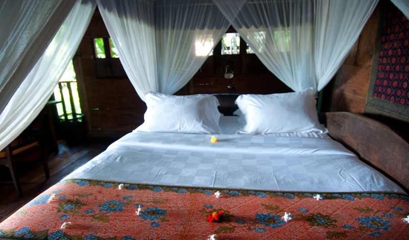 Bambu Indah, is a unique accommodation in rustic 100 year old house from Java, nicely decorated and with all the necessary mod cons, amidst lush paddy fields in Ubud, Bali. All buildings are slightly different from each other. This a hotel for those who want to experience something totally different than traditional hotel rooms. There’s a pool running between the houses and it is kept clean and hygienic in a completely natural way without any chemicals at all.