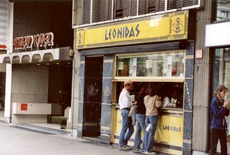Väldigt nära vårt hotell ligger Leonidas där man kan köpa färska chokladpraliner. Detta är naturligtvis något man inte får missa när man är i Belgien. Vi stannade till och köpte 250 gram praliner för 3,30 €. Uppe på hotellrummet kunde vi inte låta bli att snabbt öppna kartongen och prova denna omtalade belgiska choklad. Och den var verkligen mycket god!!!