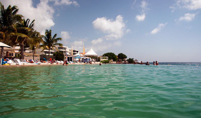 Vattnet kändes svalt precis när man gick i, men det var väldigt skönt att doppa sig. Vi simmade rakt över till andra sidan där infinitypoolen slutade och man kunde blicka ut över havet.