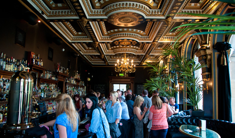 Med ett tak i målad stukatur och vacker inredning är det en alldeles speciell Restaurang och Bar mitt i centrala Edinburgh.