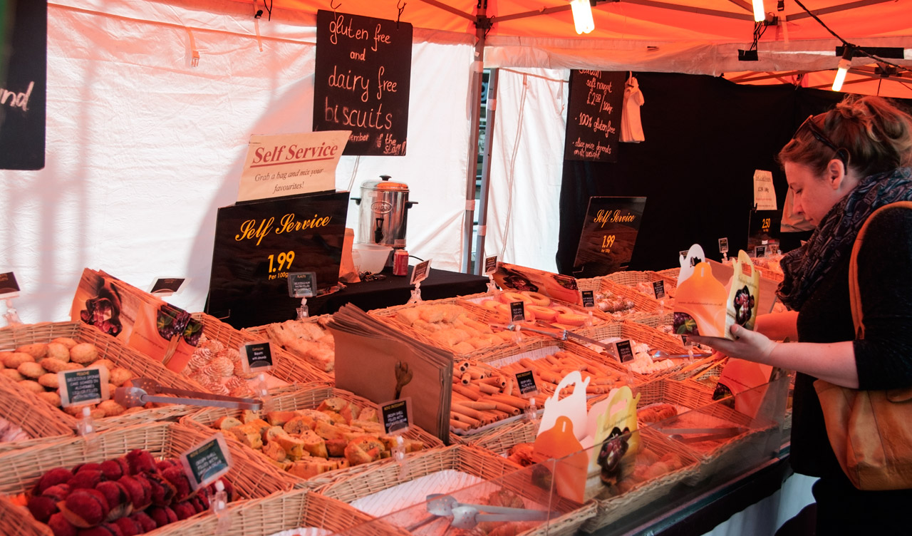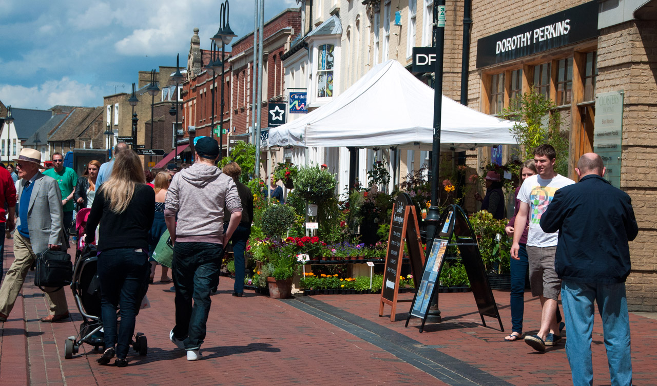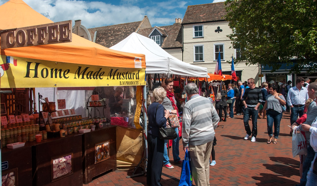 I centrum av staden finns marknadsplatsen och här hålls marknad med lite olika inriktningar utspridda över månaden. 1,3, och 5 torsdagen i varje månad hålls en generell marknad, varje lördag hålls en hantverk och samlarmarknad, Farmers Market sker varje 2 och 4:e lördag i månaden, Blomster, mat och hantverksmarknaden ligger på sista söndagen i varje månad samt på helgdagar från påsk till slutet av november.