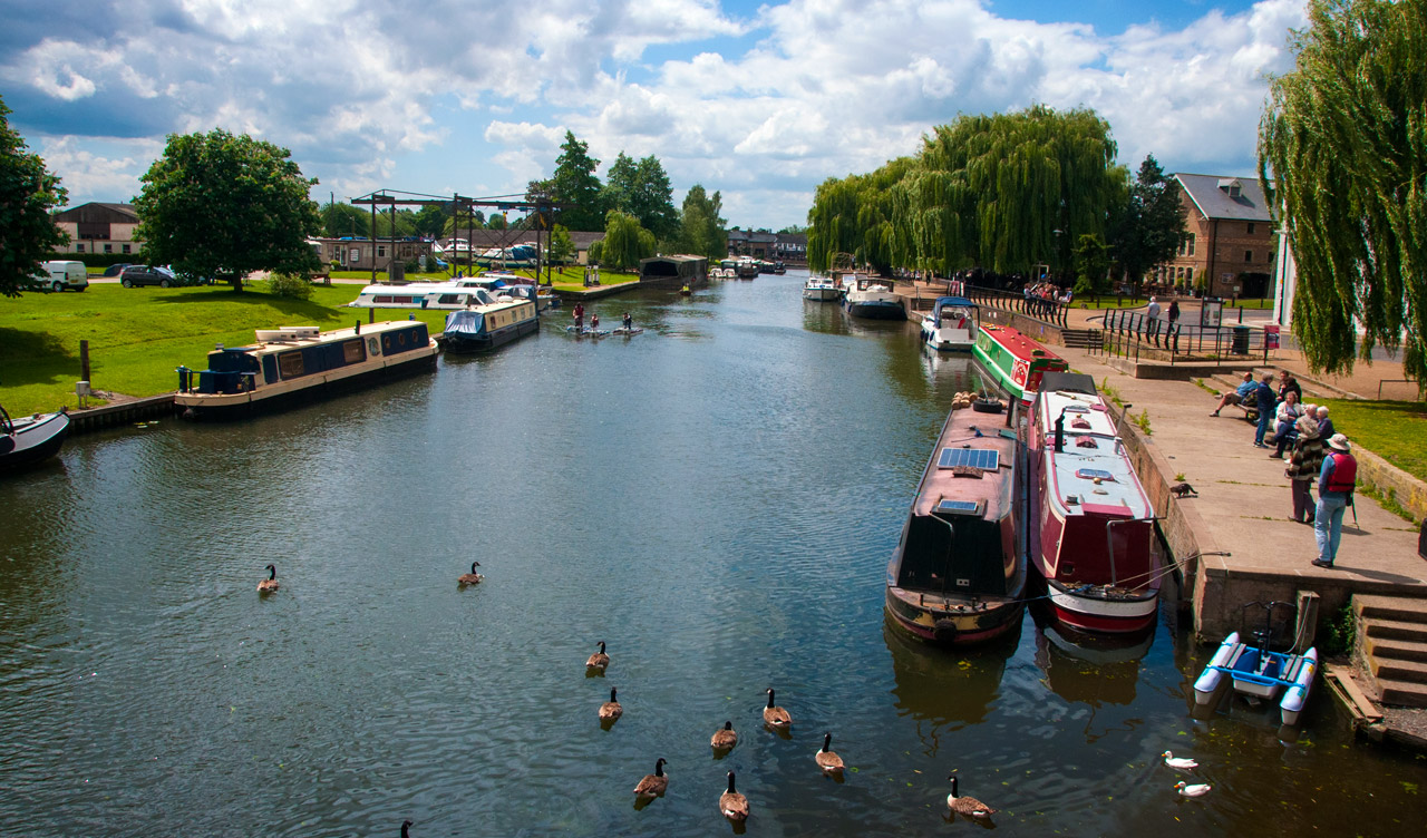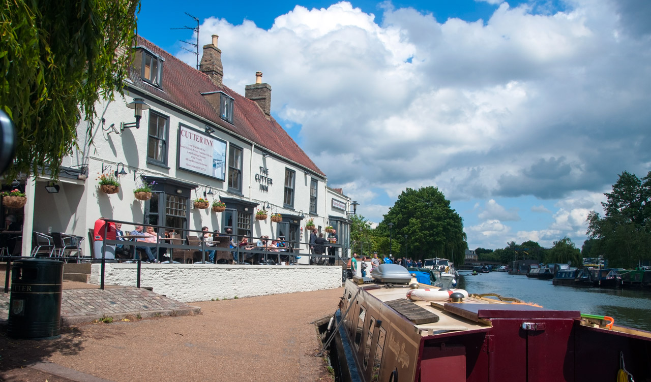 Ett av Englands finaste te-rum kan man finns där Waterside möte Great Ouse. Bland grönska i den söta trädgården kan man få en underbar afternoon tea med ett utval av många te-sorter, kaffe och en mängd scones och engelska kakor. Det finns även bord inomhus för kalla dagar och vinterhalvåret.
