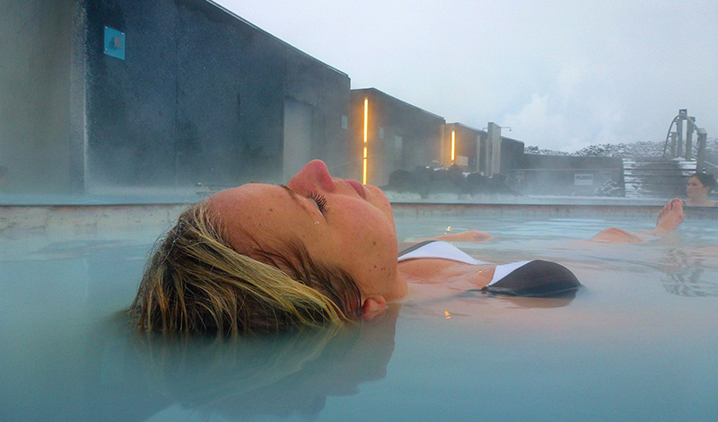 Anki njuter av det varma vattnet i Blå Lagunen, Grindavík Island