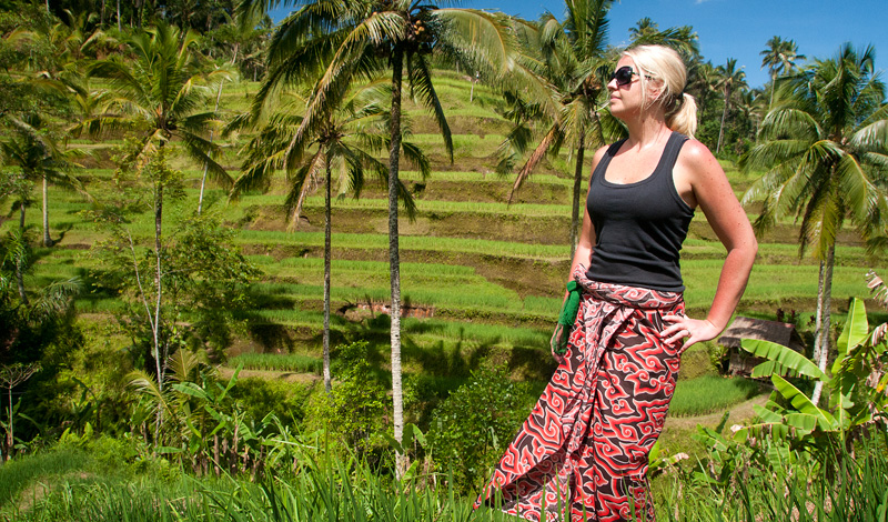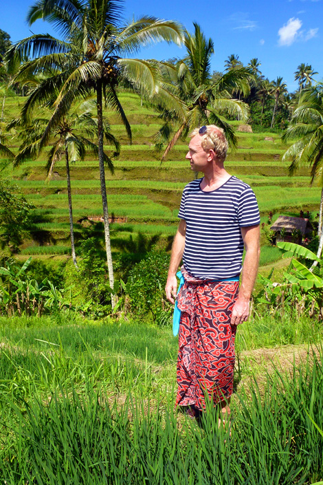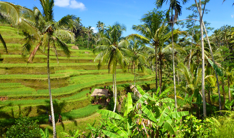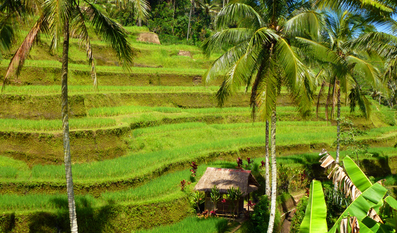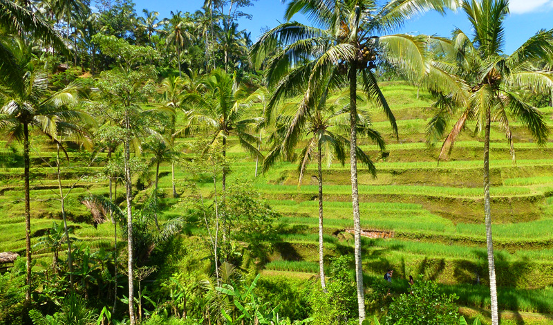 Vi hoppar upp på cykelsadel och cyklar från Sayan in till centrala Ubud. Strax norr om staden tar vi oss till vackra gröna landskap av risfält. Tillbaka staden kollar vi utbudet i butikerna och avslutar på mysig restaurang.