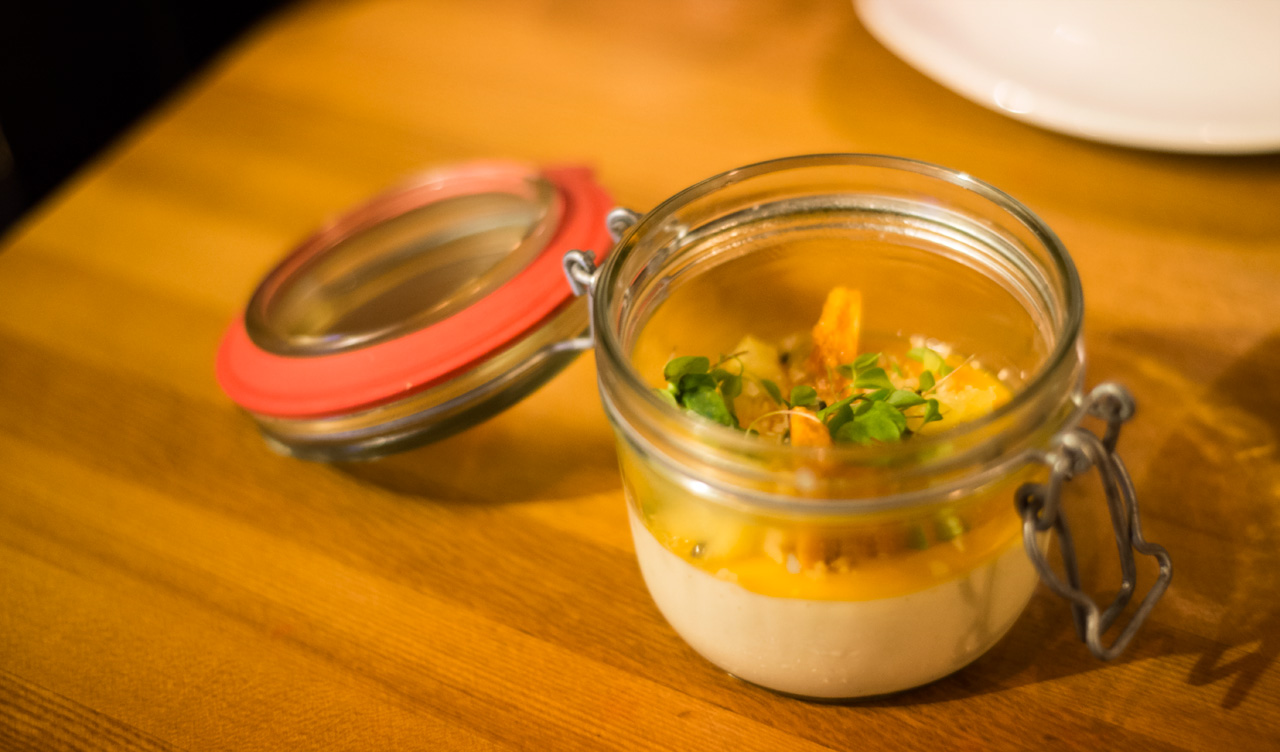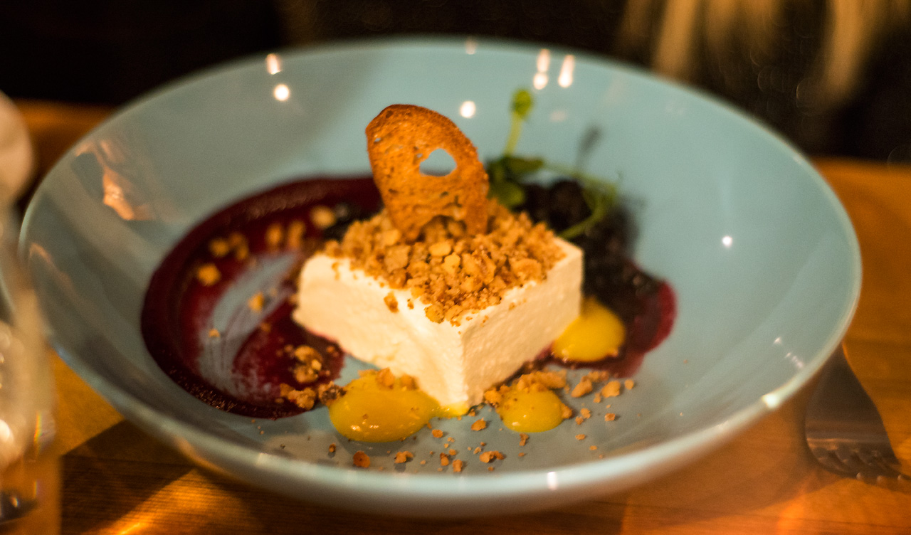 Att Oliver Dunn är en Michelin-kock, menyn såg mycket god ut och att priset var överkomligt för en nyårmiddag var en jackpott. När vi satte oss ner och direkt blev serverade ett glas bubbel var det pricken över i:et.