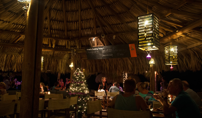I området längs vattnet i Jan Thiel hittar man Zanzibar restaurang. På menyn finns både fina rätter och stenungsbakad Pizza. Serveringen består dels av en liten loungearea intill Pizzerian och en stor hyddliknande byggnad.