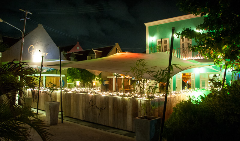 I mitten av lilla gatan Schoonesteeg 1 i Pietermaii ligger Ginger Restaurang på en stor gård. På menyn finns ett antal utsökta rätter med inslag av inspiration både från Asien såväl som Karibien.