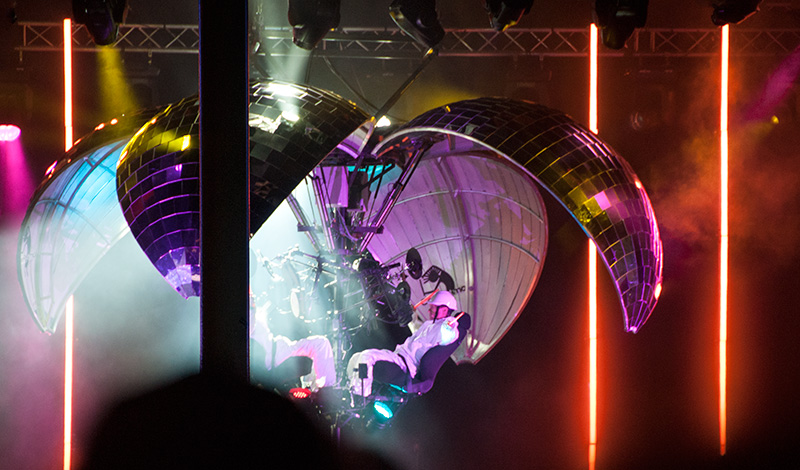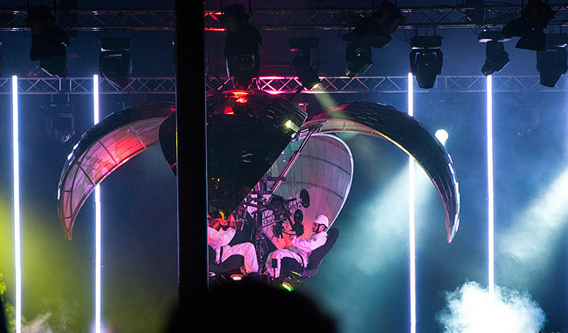 En gigantisk discokula snurrade långsamt till musik och sakta öppnades den för att avslöja två män i ljus kostym sittandes inuti. Ena mannen visade sig vara Petter A. Stordalen som så snart han kom ner brakade loss i ett excentriskt och energiskt tal om sin stora kärlek till Göteborg och hur fantastiskt han tyckte staden var.