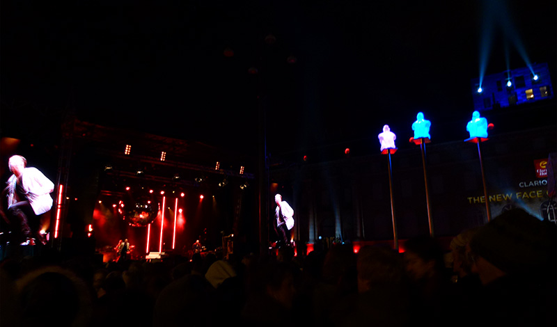Så hade dagen kommit för invigningen och hela Göteborg hade bjudits in till Drottningtorget, alldeles vid centralstationen i Göteborg. Vid halv sju startade ett fantastiskt bildspel på fasade till det nya hotellet, Clarion Hotel Post. Temat spelade an på den historiska verksamheten i byggnaden bland annat ingick animerade vykort, brevlåda och brevbärare. I många fall hade man använt fasadens former på olika vis för att passa in i ljusspelet. Efter några minuters fantastiskt skådespel dök hotell mogulen Petter A. Stordalen upp i filmen och skålade med publiken varpå ett läckert fyverkeri satte igång från byggnadens tak. Ljuset försvann från byggnaden och allas uppmärksamhet flyttades till scenen som stod längs ena sidan.