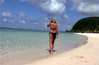 Vi promenerade en stund på stranden och njöt av den underbara söderhavsön. Tänk, kollar man i en kartbok är den här paradisön enbart en liten liten prick.
