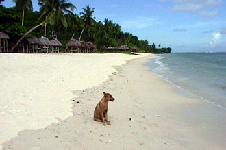 Hela förmiddagen tillbringade vi på stranden. I söderhavsvärme som denna är det svårt att hålla sig på stranden några längre stunder. Det är tur att havet bara är några korta fotsteg därifrån.