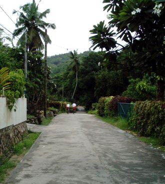 Vi cyklade en sväng, passerade La Passe och fortsatte till Pataran restaurang där vi planerat att luncha, men tyvärr hade de stängt. På vägen tillbaka började det regna och vi cyklalde till vårt stamhak, La Digue Island Lodge där vi åt en sen lunch.