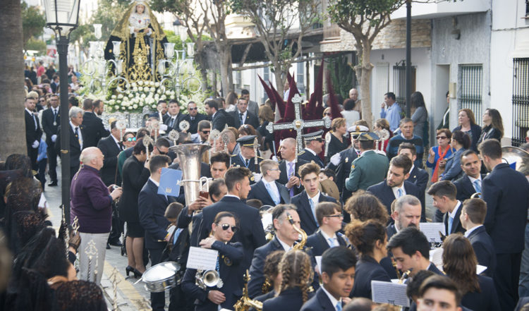 Procession genom Manilva med Jesus och helgonfigur
