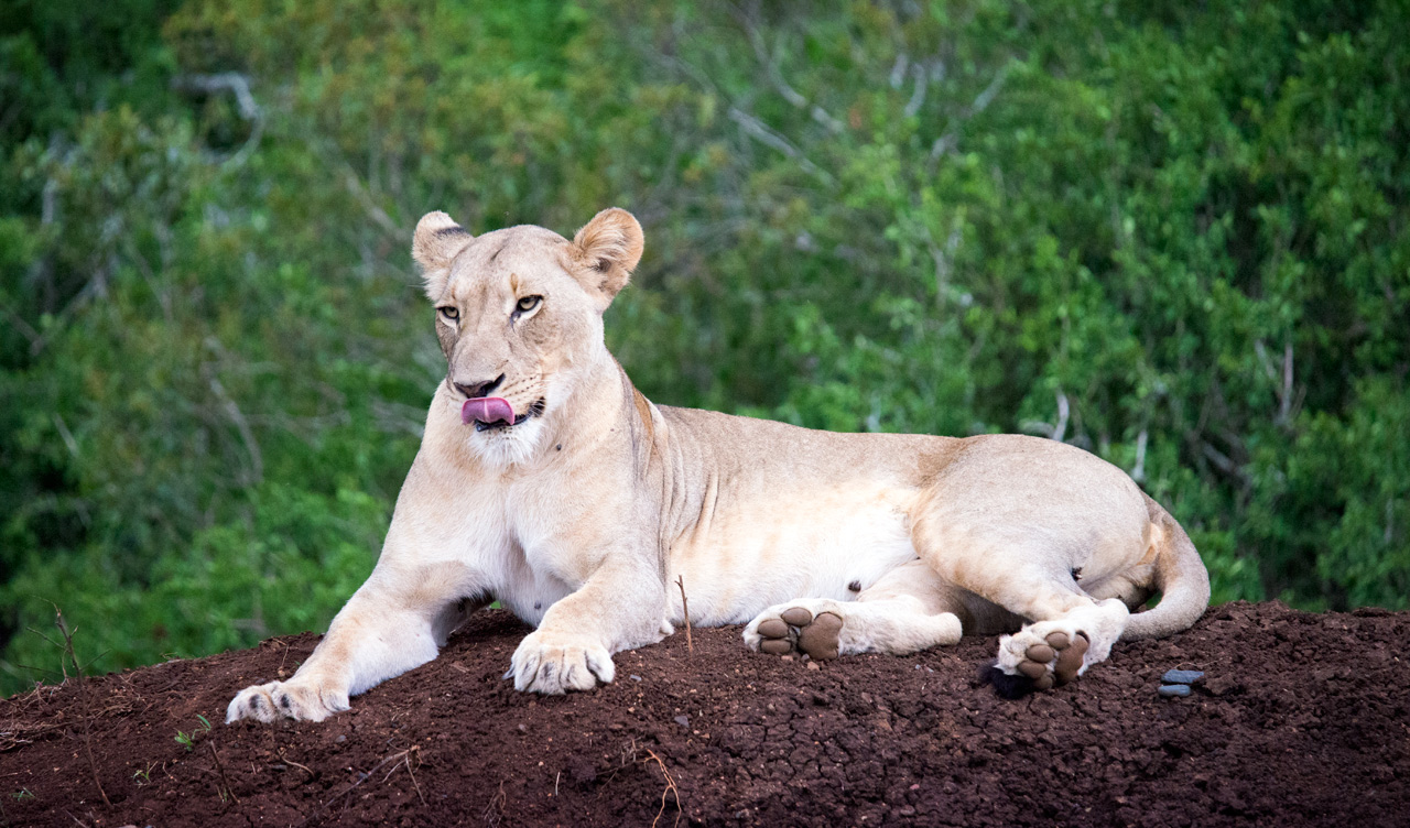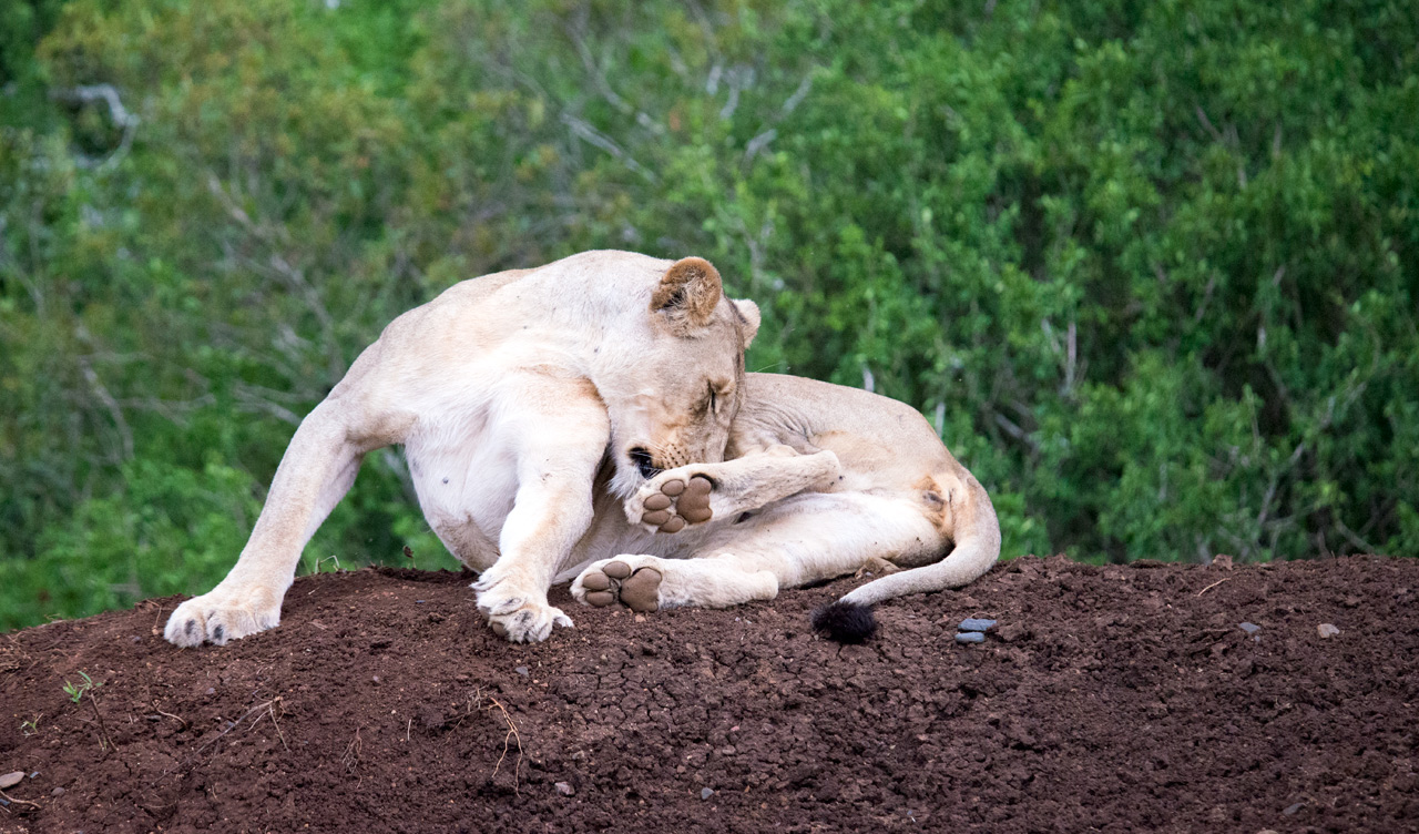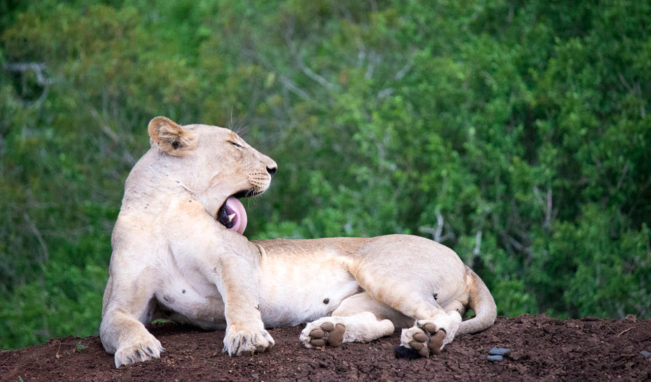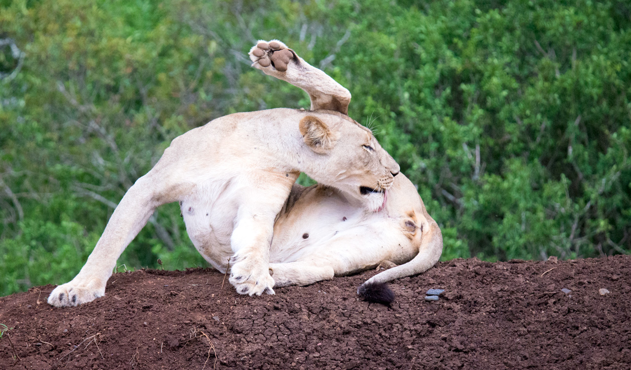 När André svängde in vid det lilla vattenhålet vi besökt dagen innan så var lejonen här igen. De hade bytt plats men låg på höjden och väntade på något oförsiktigt djur skulle dyka upp.