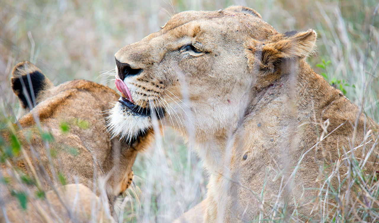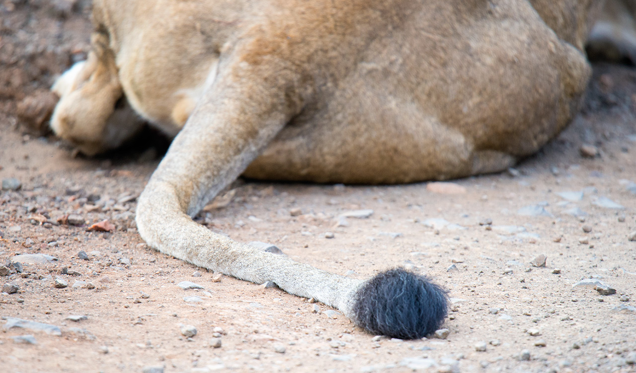 Vi hade redan sett anledningen och när Pieter rullade längre fram fick vi ännu bättre vy av två stora lejonhonorna som låg längs den lilla grusvägen vi körde på.