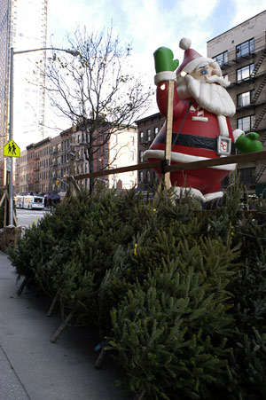 Julgransförsäljningen i vårt kvarter hade idag fått upp en jultomte vid gatan.