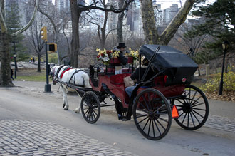 På vägen in mot stan passerade en mängd vagnar som drogs av hästar. En turistig attraktion men något som passar i inramningen av Central Park. Vid den stora isbanan nere vid södra utkanten av Central Park stannade vi som vanligt till och tittade en stund.