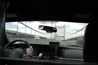 Vi gick ut och ställde oss i den korta kön till taxi och ganska snart satt vi på väg in mot Manhattan.