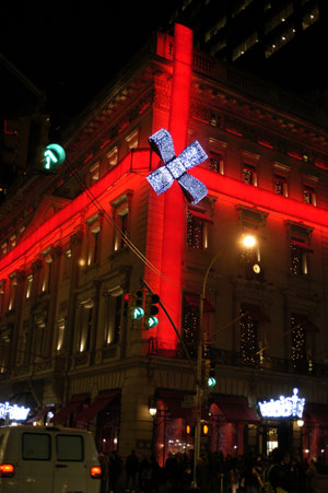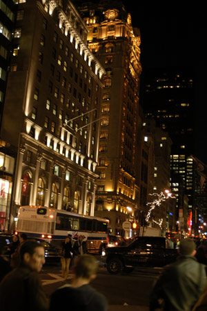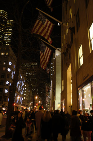 Alldeles utanför butiken låg en hållplats och buss M31 dök upp direkt. Den tog oss söderut på York till 57:e gatan då den svängde västerut. Trafiken blev tjock och det tog lång tid att komma fram. Vi hoppade av vid 5:e avenyn som var full med människor ivriga att julshoppa.
