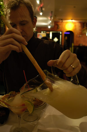 Vi gillar båda Margaritas och när vi skulle beställa in blev vi osäkra på vilken typ av karaff vi brukar ta här. Vi beslutade oss för att ta en hel pitcher. När kyparen kom in insåg vi att det var liiiiiiite för mycket. Förmodligen är det en halv vi brukar ta. Det här skulle bli tufft, speciellt då vi var i slutet av en lång resdag och man onekligen kände sig lite trött. Men men, den var oerhört god i alla fall! 🙂