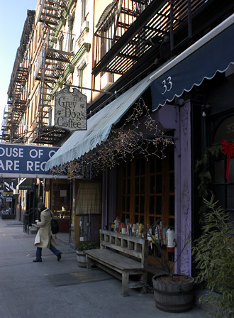 Vi upptäckte Grey Dog Coffee en kylig dag i december 2001. Snöstormen chockade New York borna och när affärerna på femte avenyn började stänga ner åkte vi vidare till Greenwich Village. Vi plogade oss fram i snömängderna då vi upptäckte träskylten med en hundtass och texten Grey Dog Coffee. Vi gick in och satt kvar och njöt av detta ställe flera timmar. Från den dagen är det ett måste för oss att besöka detta café varje gång vi är i New York.