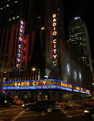 Vi passerade Radio City Music Hall och utmed vår promenad fanns fortfarande massor med julpynt i träd och på byggnader.