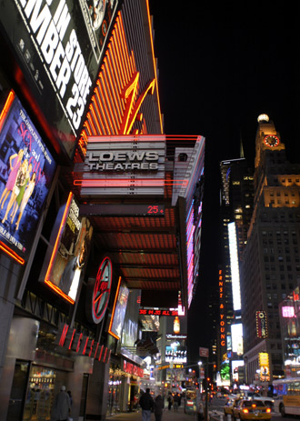 Mätta och belåtna betalade och gick ut i kylan igen. Vi promenderade ned till Times Square igen. Det är en speciell upplevelse att befinna sig mitt bland all neon och gigantiska upplysta skyltar och skärmar.
